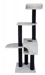 Nowoczesny, beżowo - czarny drapak z trzema półkami i budką