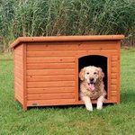 Jasnobrązowa, sosnowa buda dla psa z płaskim dachem - rozmiar M